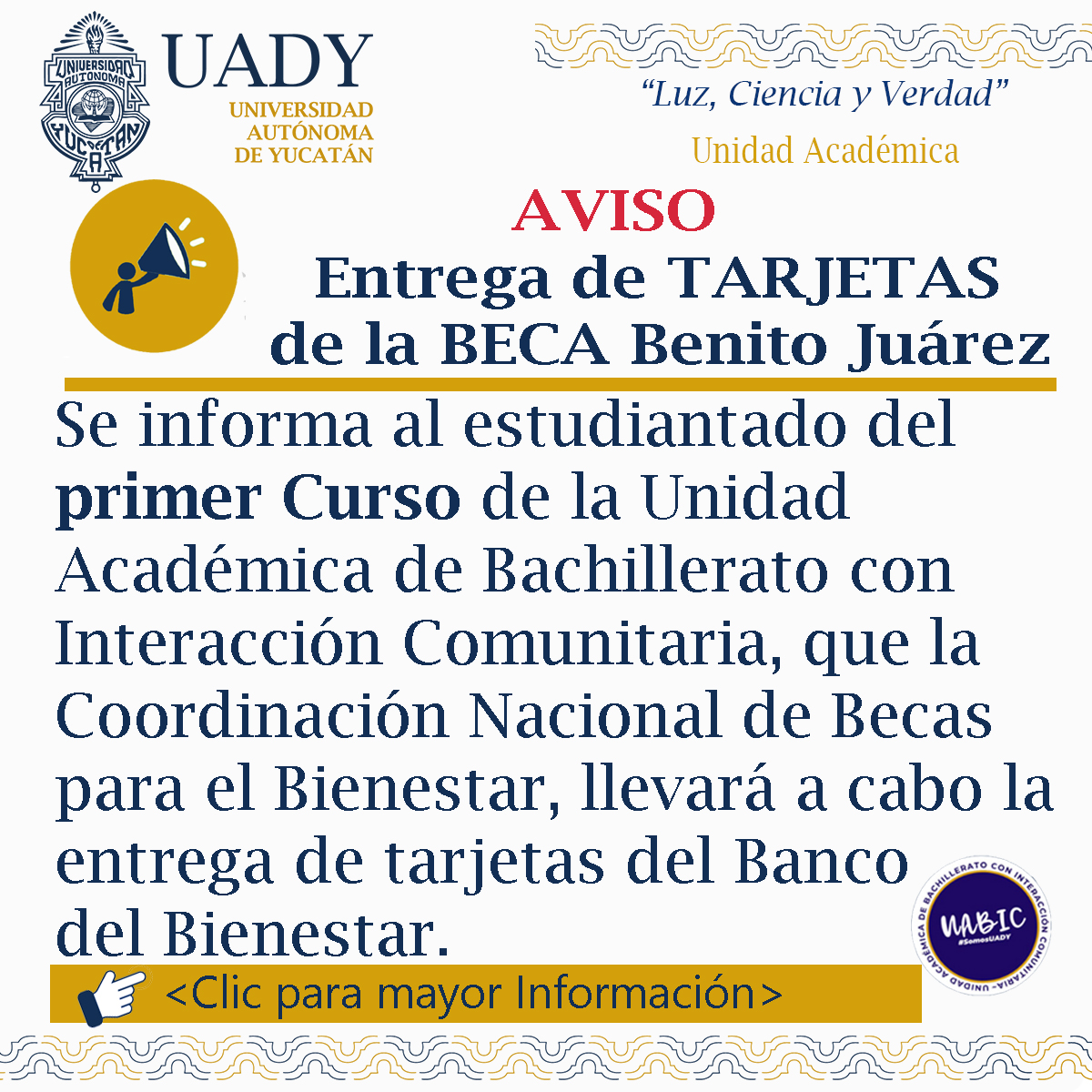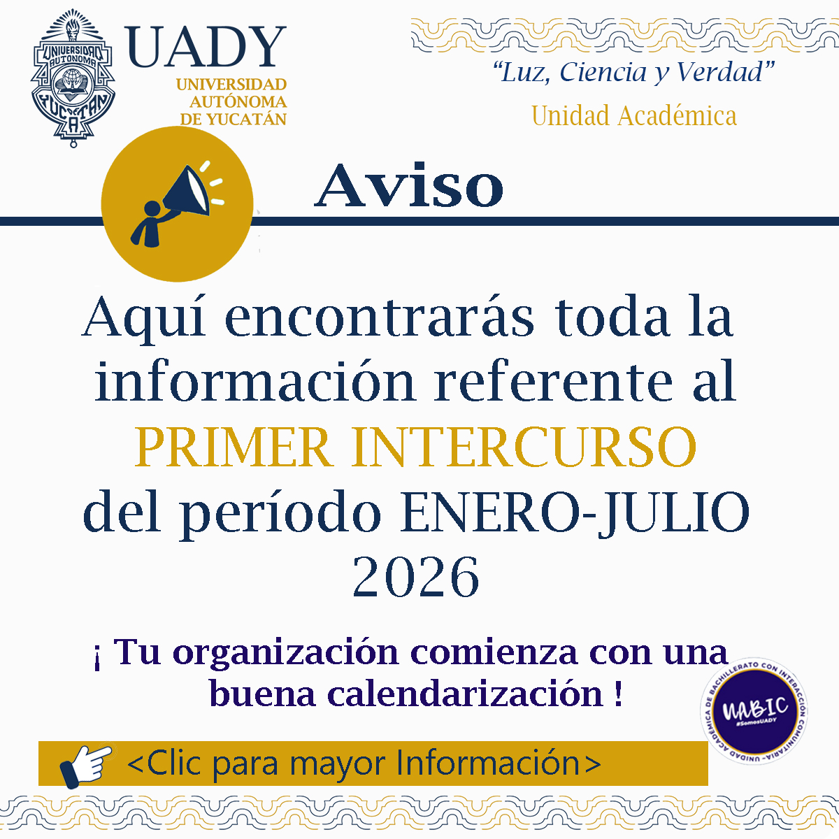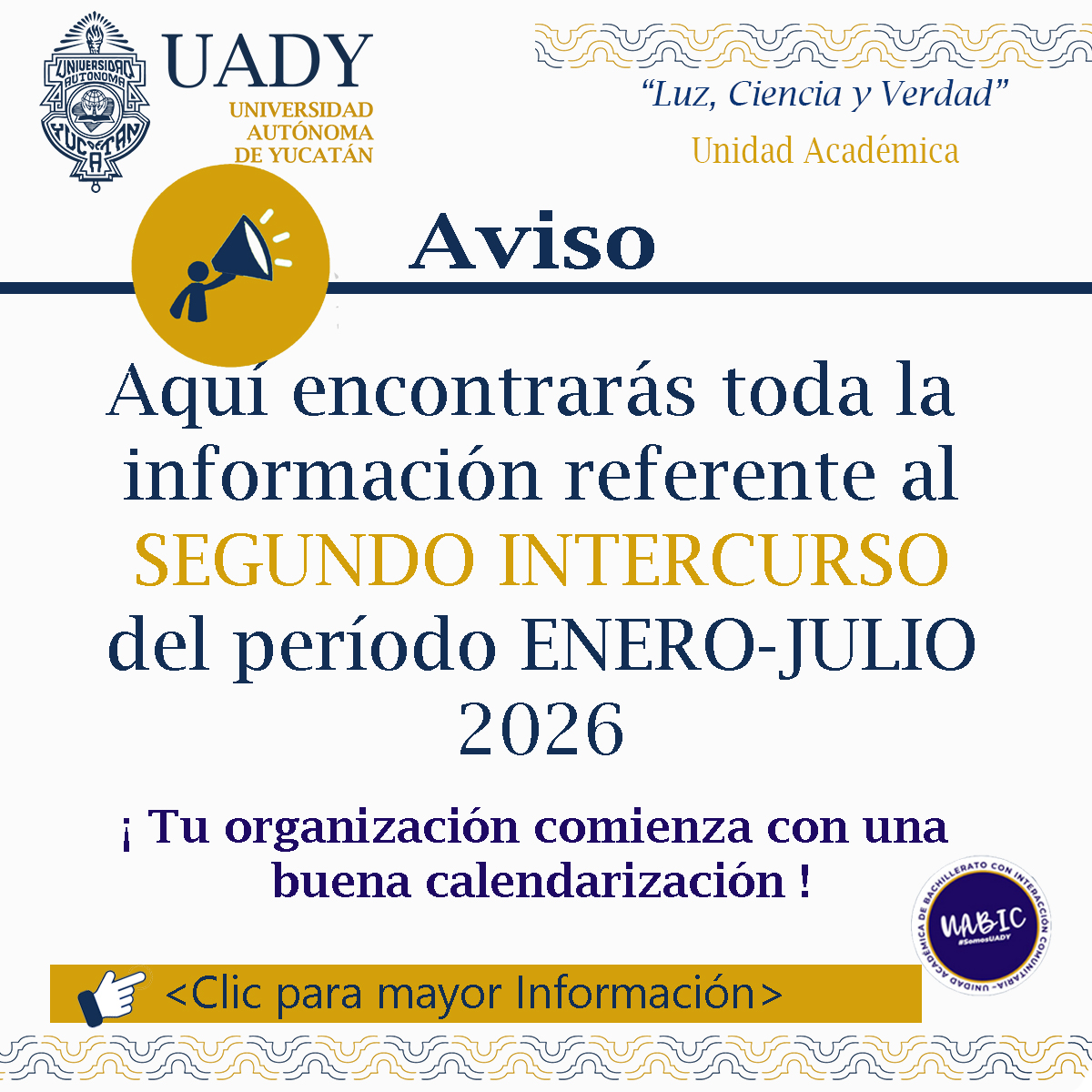 Todos los Derechos Reservados Unidad Académica, UADY 2026. Esta página puede ser reproducida con fines no lucrativos, siempre y cuando no se mutile, se cite la fuente completa y su dirección electrónica, de otra forma requiere permiso previo por escrito de la institución. |